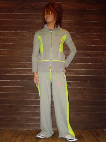 このアイテムは、裏毛スウェット生地の黒いジャージに発色にいいカラーで切替し加工をし、胸にメキシカン風のスカル、ポケットには、ヒッピー風のスカルを刺繍してあります!!結構タイトな作りですが、生地がスウェット生地なので動きやすく、形もジャージなのでスポーティーですね!!