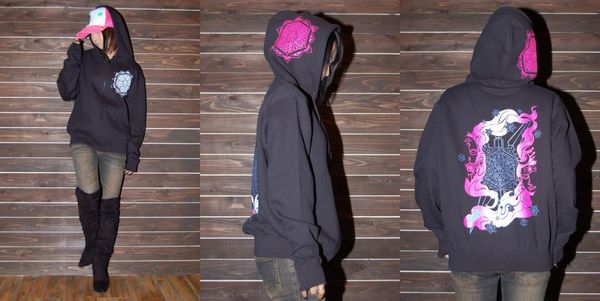 このアイテムは、厚手のパーカーのフード、胸、バックに雪の結晶のモチーフを豪華にプリントしたインパクトのあるアイテム!!